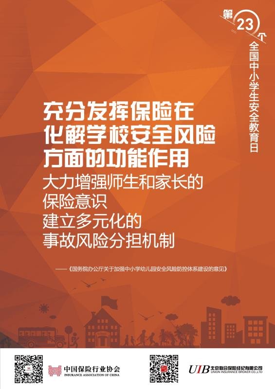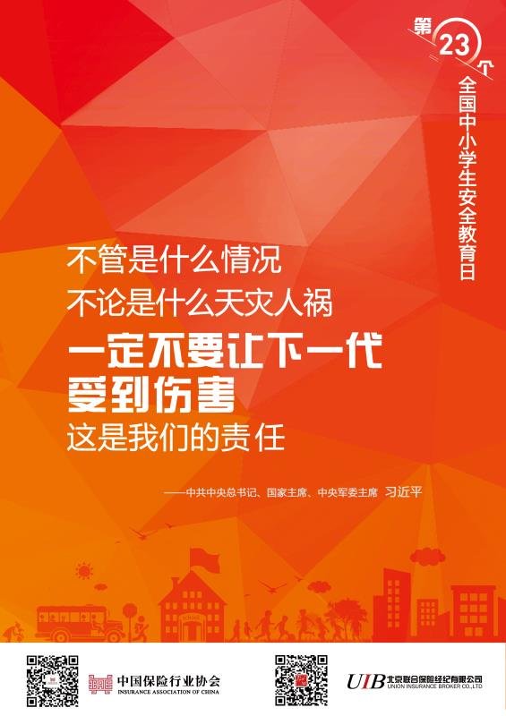 3月23日,飘花影院电影免费观看携手北京联合保险经纪有限公司发布全国中小学生安全教育日海报。校园安全宣传海报共8幅,将于第二十三个全国中小学生安全教育日(3月26日),在学校、社区进行张贴,在网络进行广泛宣传,推动风险管理与保险理念进学校、进社区、进家庭,动员全社会的力量来创建和维护安全校园,推动全国中小学生安全教育工作,发挥保险业参与社会风险治理的积极作用,呵护亿万学子健康成长。