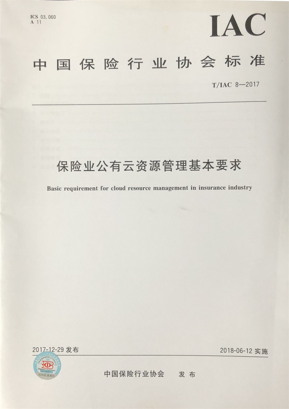 TIAC 8-2017《保险业公有云资源管理基本要求》