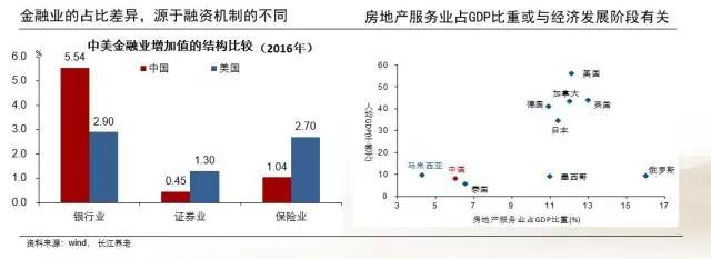 房地产服务业,也是金融服务业与金融的一部分,房地产服务业远远低于美国,这也就是大家为什么急着买房,我国房地产服务业占GDP比重较低,或与我国当前经济发展阶段存在一定关联。